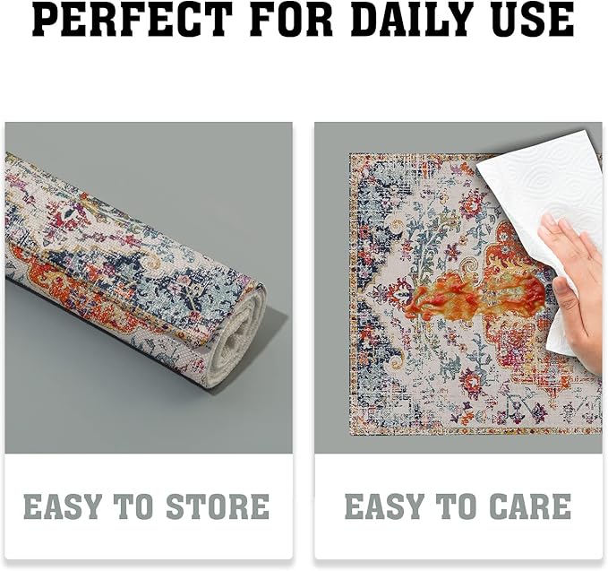 - ★【Double-Sided Printing】:The washable placemats are double-sided printing, high-definition printing technology, vivid colors, and clear patterns. These Boho Carpet plate mats with Vintage Orange Blue Ethnic Bohemian Floral Carpetpatterns are colorful and clear, adding more fun to your home.