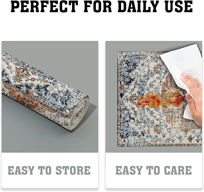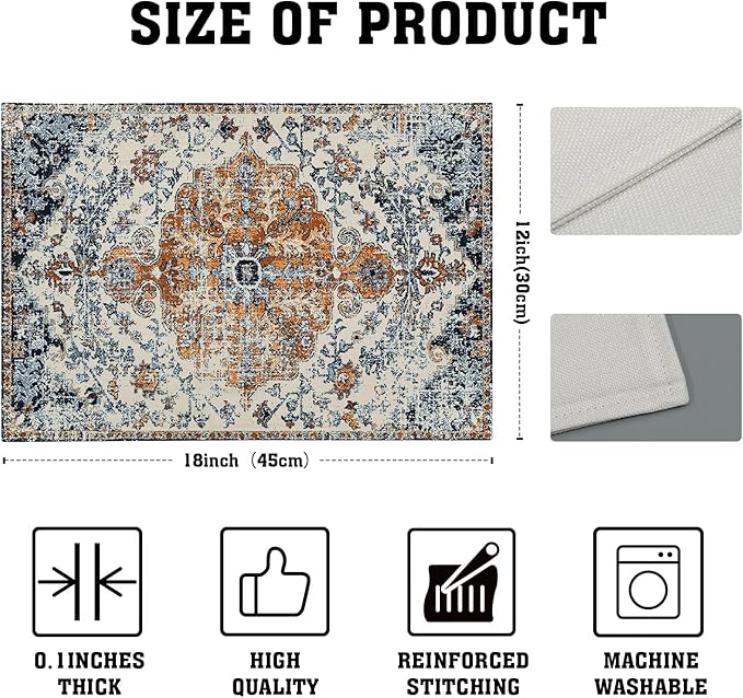 - ★【Double-Sided Printing】:The washable placemats are double-sided printing, high-definition printing technology, vivid colors, and clear patterns.These Brown Navy Blue Ethnic Boho plate mats with Bohemian Carpet Vintage Gold Black Tan Floral patterns are colorful and clear, adding more fun to your home.