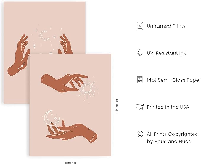 HAUS AND HUES Astrology Posters and Celestial Decor - Sun and Moon Art Astrology Wall Decor, Sun Wall at Posters Spiritual Boho Prints Wall Art, Astrology Wall Art Boho Art Prints (Unframed 11x14)