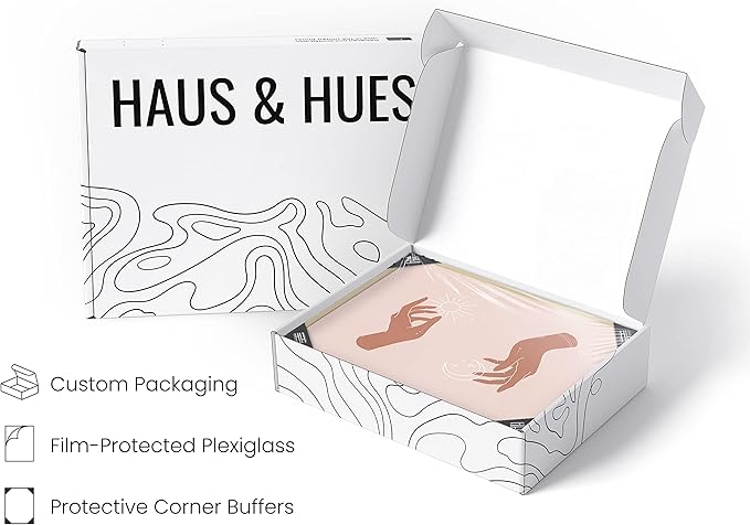 - PREMIUM QUALITY: To achieve the quality we’re known for, we use a printing technique on 14 pt semi-gloss paper. The paper we use for moon prints is sustainably sourced, and our inks are water-based. The spiritual wall art is equipped with plexiglass covered by protective film and two metal hangers for horizontal or vertical hanging. The sun and moon astrology poster set is shipped in a durable box for protection in transit.