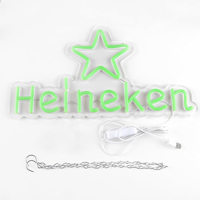 - Catch Your Eyes with Unique design: The neon sign design is a well-known beer brand and a cute pentagram, very unique and glamorous. It can be used as an attractive home and business led sign, ideal for home bar, man cave ,bar and shop.Our neon signs with clear light will bring your friends or guests an excellent impression with creating a fantastic atmosphere