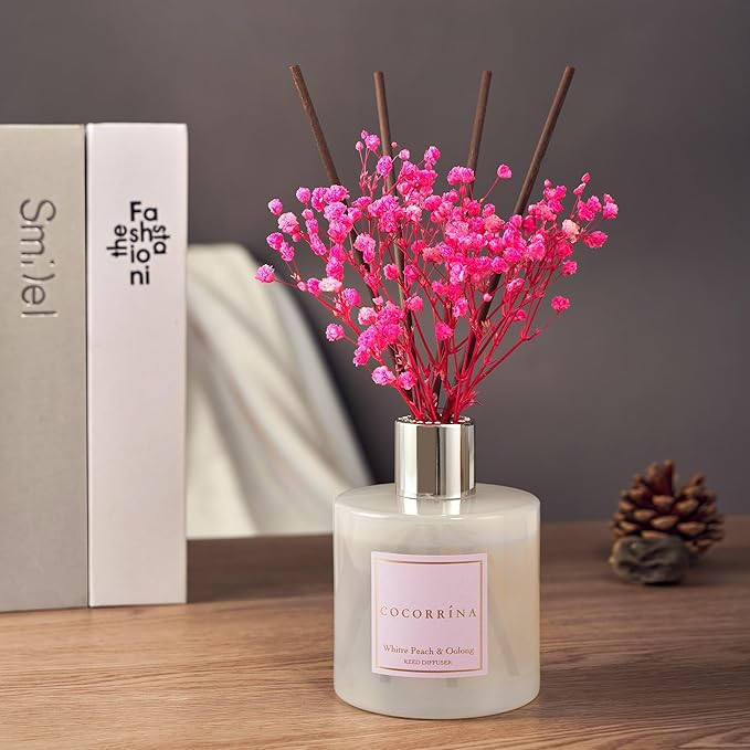 Cocorrína Reed Diffuser Sets - 6.7 oz. White Peach& Oolong Scented Diffuser with 8 Sticks Home Fragrance Reed Diffuser for Bathroom Shelf Decor