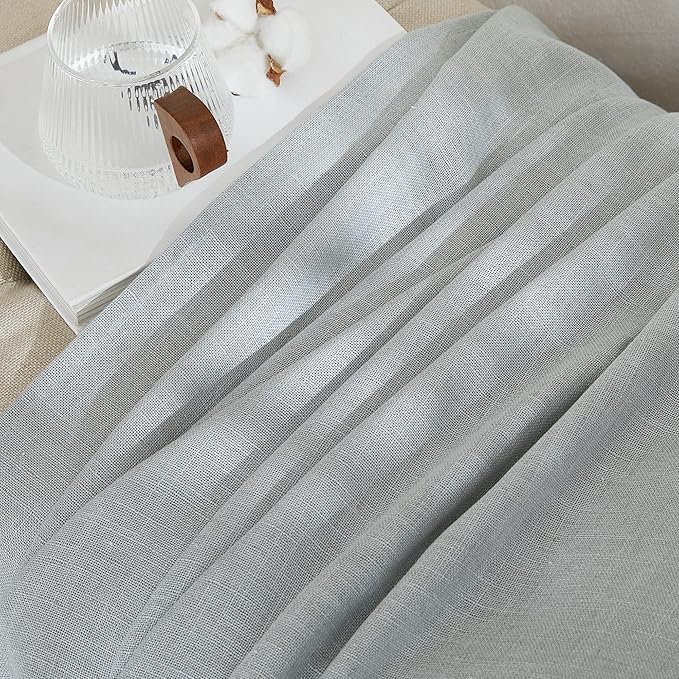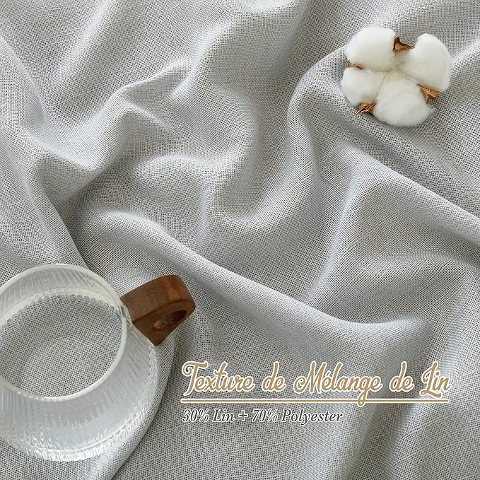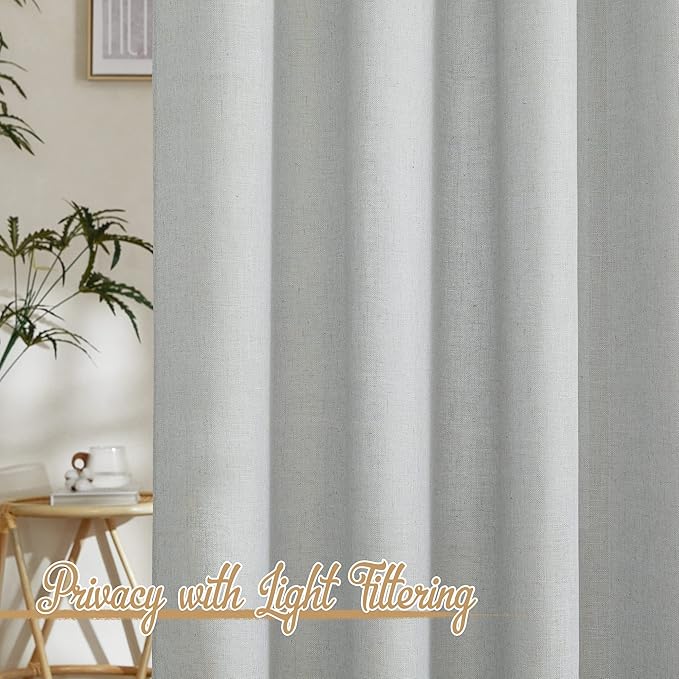 NICETOWN Linen Light Gray Curtains for Living Room, Grommet Top Flax Linen Blend Semi Sheer Eclectic Drapes Privacy with Light Filtering for Kids Room/Bedroom, W52 x L84, 2 Pieces