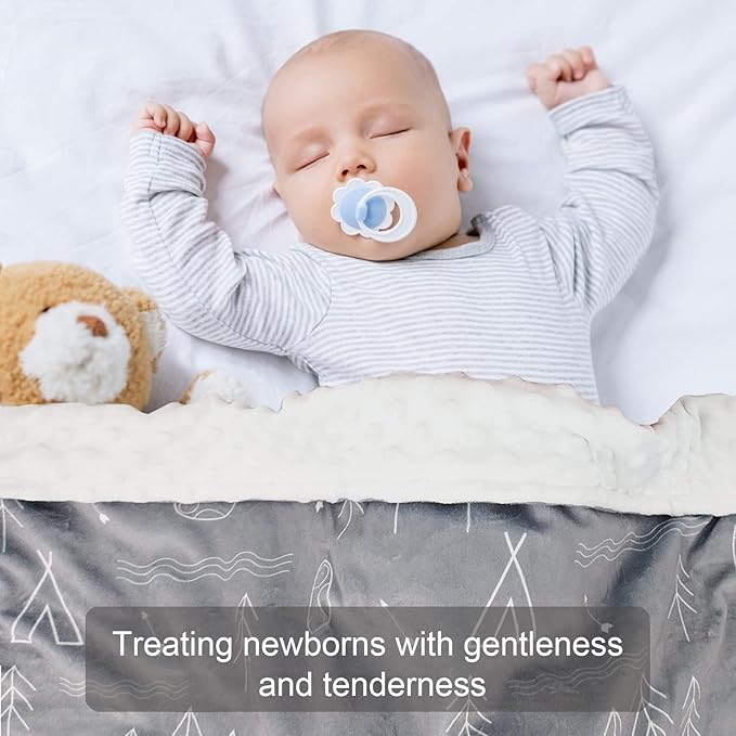 - UNIQUE DESIGN : Crafted from soft, breathable, and skin friendly plush polyester fabric, Napcure minky baby blankets are especially suitable for your baby's delicate skin. Each toddler blanket boasts a comforting double layer design with a dotted backing, which can help soothe your baby and make it easier for them to fall asleep. Plus, these blankets are thick enough to provide warmth and comfort in all seasons and climates.