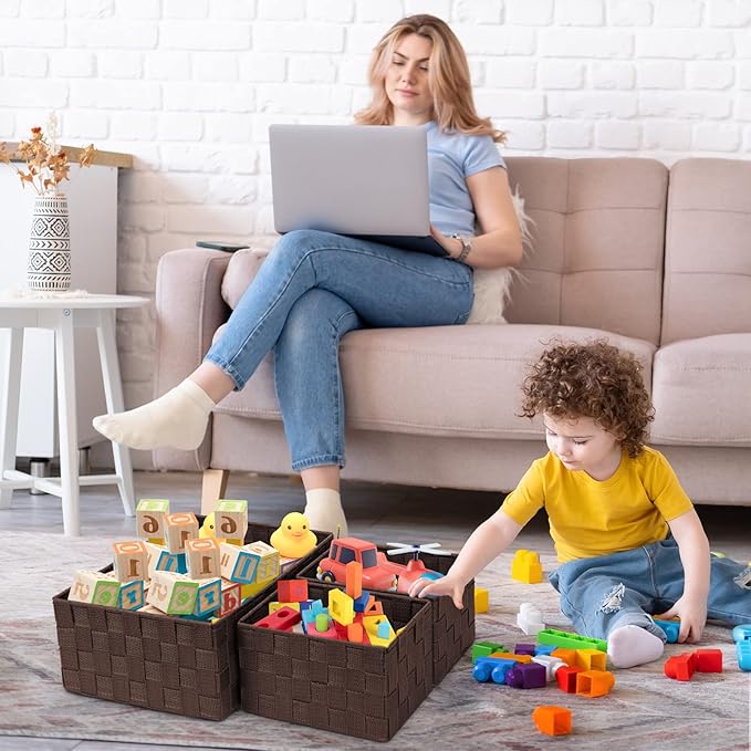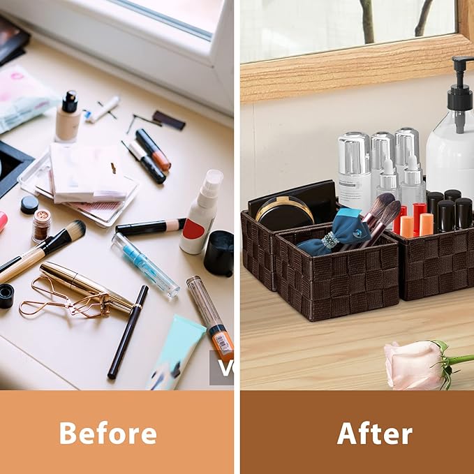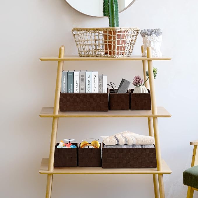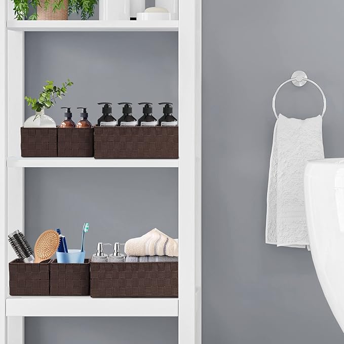 Posprica Woven Storage Baskets for Organizing 6 Pack, Large&Small Storage Cube Bins Set for Bathroom, Storage Boxes Container for Drawer, Closet, Shelf, Dresser, Brown