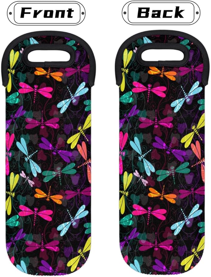 Dragonfly Ornaments Wine Gift Tote Carrier Black Purple Neoprene Wine Tote Bags Holder Cooler Wine Lover Gift