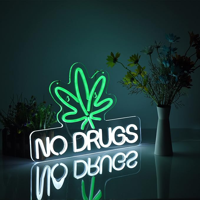 - No drugs marijuana neon sign is made by flexible silicon LED strip lights and fixed on an acrylic clear board