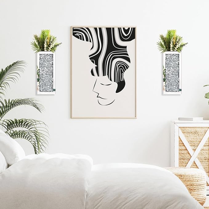 Crushed Diamond Mirrored Wall Vase Crystal Silver Mirror Flower Vase Stunning Decorative Glass Hanging Planter for Home Decor Living Room Dining Room Bedroom.Can't Hold Water(Set of 2)