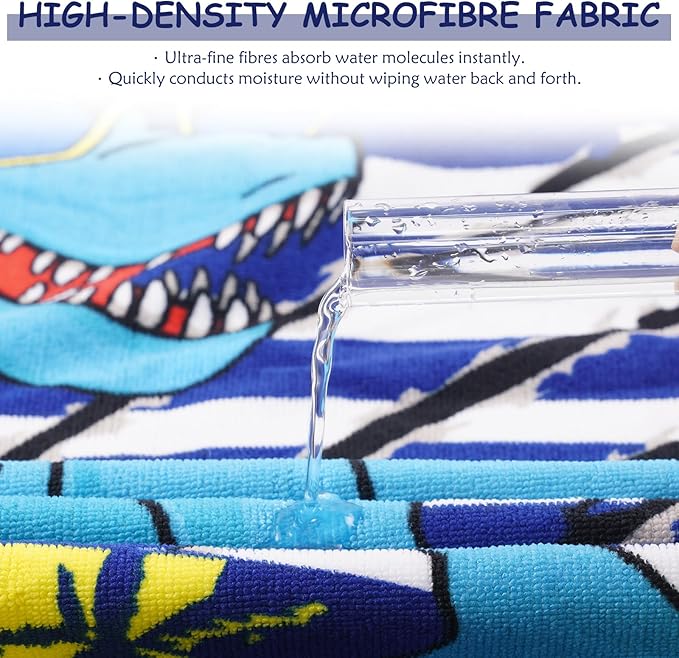 MOKANI Kids Hooded Poncho Towels, Soft & Absorbent Microfiber Beach Towel, Swimming Pool Changing Robe Bathrobe Bath Towel