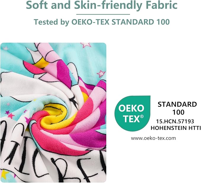 - OEKO-TEX Standard 100 Certification - The bath poncho for children has been tested for harmful substances by OEKO-TEX Standard 100 and comply with safety standards. Soft, absorbent microfiber material ensures your child stays warm and dry after bath time.