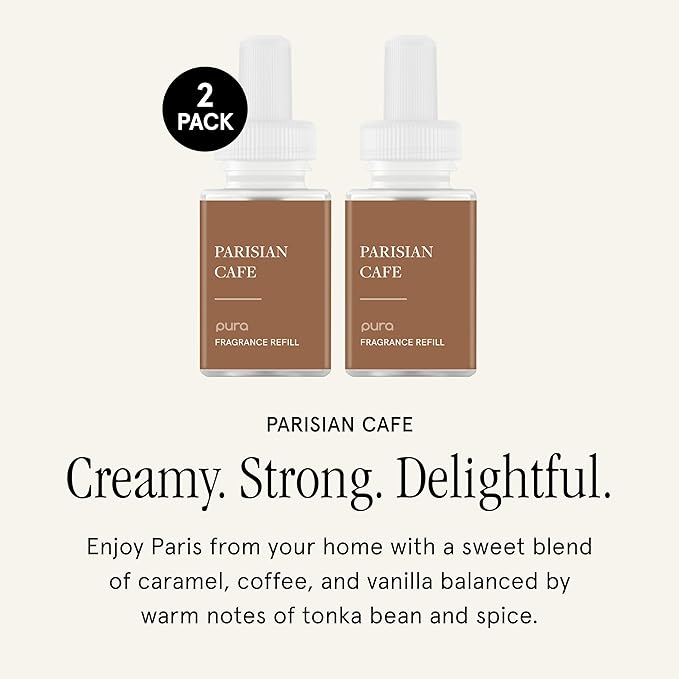 Pura Smart Home Air Diffuser Fragrance - Smart Home Scent Refill - Up to 120-Hours of Premium Fragrance per Refill - Clean Diffuser for Office & Apartment - 2 Pack, Parisian Café