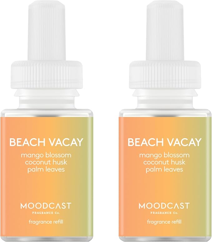 Pura & Moodcast Home Scent Refill - Smart Home Air Diffuser - Up to 120-Hours of Premium Fragrance per Refill - Household Essential - Clean & Safe Diffuser Fragrance - 2 Pack, Beach Vacay