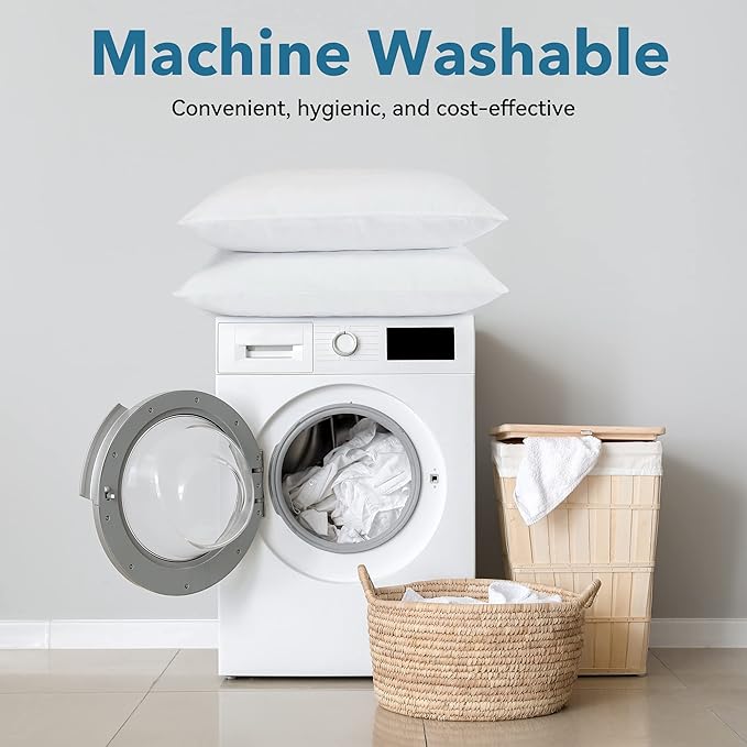 - [GENTLE WASHING & HIGH-TEMPERATURE DRYING]: High-grade materials withstand regular washing without losing shape or softness. Open the bags, squeeze and rub the pillows. Please allow 24 hours for them to fluff up completely.