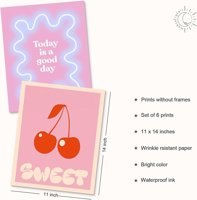 Habseligkeit Pink Gradient Aura Posters for Room Decor Aesthetic, Danish Pastel Cute Room Decor, Cozy Wall Art Prints for Girs Dorm Aesthetic Decor Unframed, 11x14in, Set of 6