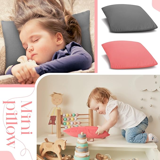 - Small Size for Kids: our tiny pillows for baby measure about 11.02 x 6.89 x 2.36 inches/ 28 x 17.5 x 6 cm; The mini size allows you to squeeze it into any corner without too much deformation, and it is also very easy to carry when traveling and does not take up space; Please confirm the size before purchasing
