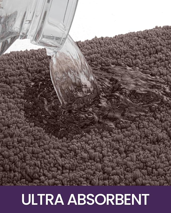 DEXI Bathroom Rug Mat 43x24, Extra Soft and Absorbent Bath Rugs, Washable Non-Slip Thick Carpet Mat for Shower Floor, Tub, Brown