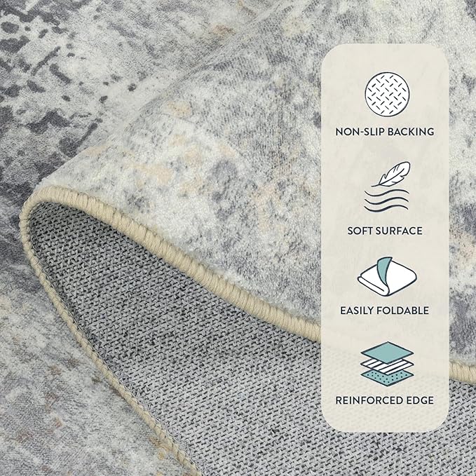 - [Modern Abstract Area Rug] - Add a pop of color to your living room or bedroom with this area rug. Designed with a delicate palette, this collection impresses with an abstract print with splashes of grey, yellow, and beige hues. Its purposefully faded look fits right in modern industrial and contemporary homes.