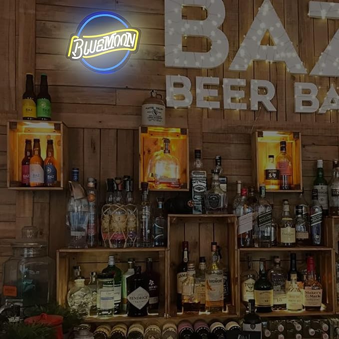 Blue Moons Neon Signs Wall Decor, Dimmable Neon Sign Colorful LED Lights for Beer Bar, Neon Light Up Signs Accessories Decorations for Man Cave Pub Game Room Aesthetic