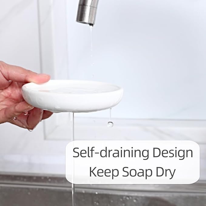 - Self-Draining Soap Dish: Slotted design allows water to drain away, keeping soap dry.