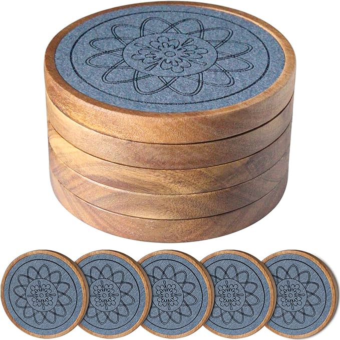 Wood Coasters for Drinks, Absorbent Coaster Sets of 5, Drinks Coasters for Coffee Tabletop Protection, Non-Slip, Non-Stick, Suitable for Kinds of Cups Wooden Table Hot or Cold Drink, 4.3 Inches