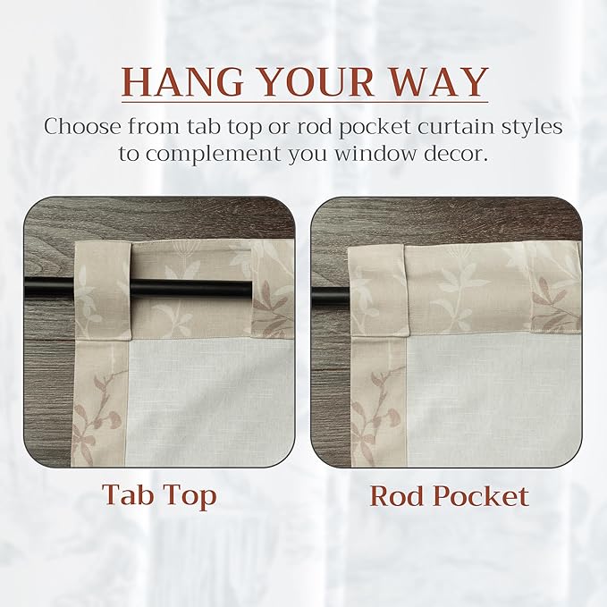 - High-quality cotton: Made from 100% breathable cotton, this curtain with rod and loop pockets offers a soft, elegant touch to any space. Ideal for living room, bedroom, dining, or home office, it brings charm and character without overwhelming your décor