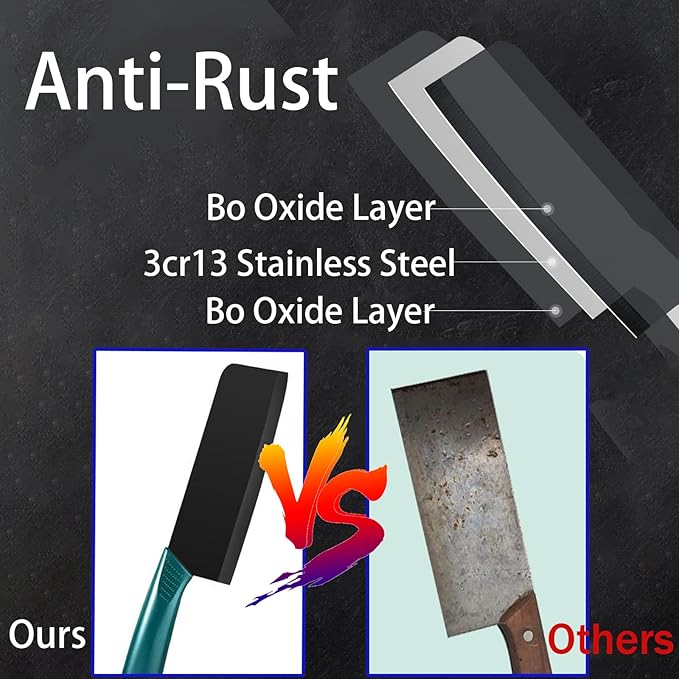 - Superior high carbon stainless steel blade are applied with black BO Oxide technology, The food-grade coating on the blade enhances durability and rust resistance. Sturdy and durable.