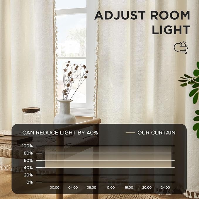 - 【Pretty & Elegant Decoration】The curtains' natural simple tones give off a relaxed, carefree vibe that's perfect for a peaceful and lovely home, adding a warm and inviting flair to your room that every guest will love.