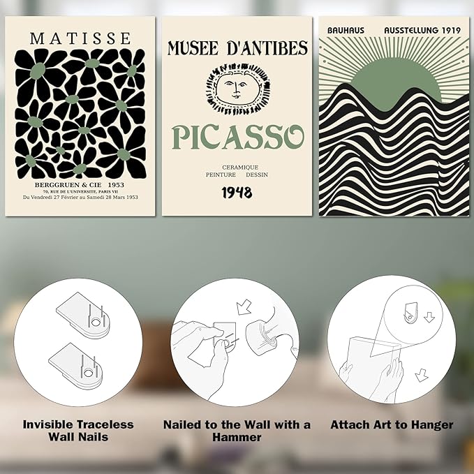 - 【Ready To Hang】The minimalist Matisse wall art comes with a hanging kit, you just need to measure the wall size and hang the new sage green Matisse wall art print when it arrives. The canvas wall art is packaged in sealed cartons to prevent damage from shipping.