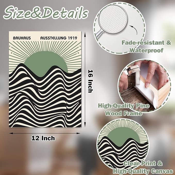 - 【Perfect Home Decoration Artwork for Walls】The simple geometric lines create a pattern of the rising sun, representing a life full of hope and beauty, and the elegant tones make it easy to match most home decor styles, such as modern wall art decor, Bohemian style decor, mid-century wall decor and more. The vintage aesthetic room decor is the perfect wall decor for bedroom, living room, bathroom, kitchen, office, or restaurant, which will create a elegant and cozy in any home space.