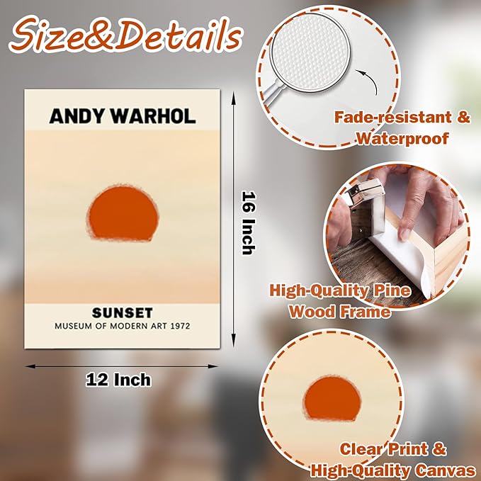 - 【Perfect Home Decoration Boho Artwork】The simple sunset pattern represents a full and beautiful life, and the warm tones make it easy to match most home decor styles, such as Bohemian style decor, modern wall art decor, minimalist geometric art wall decor and more The boho room decor is the perfect wall decor for bathroom, kitchen, living room, bedroom, office, or restaurant, which will create a welcoming atmosphere in any home space.