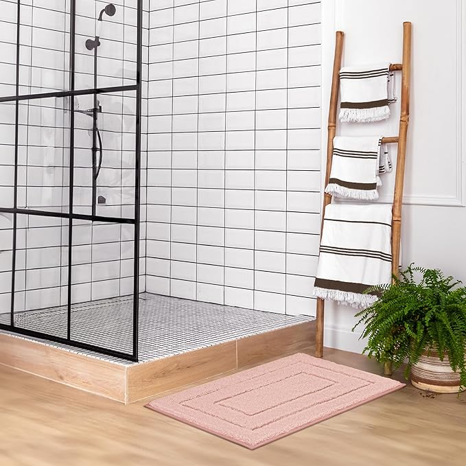 GRANNY SAYS Pink Bathroom Rugs Non Slip Washable, 24"x 36", Soft Bath Mats for Bathroom, Microfiber Shag Rug, Absorbent Bath Floor Mat, Large Bath Rug for Shower, Tub, Bedroom