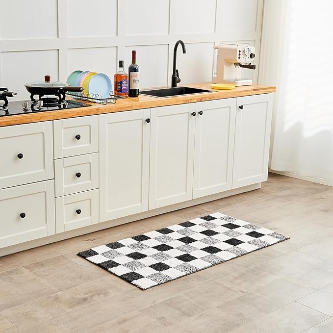 - 【Unique Checkered Design】The CozeCube Checkered bath mat chose one of the most iconic American checkered pattern, comes in two colors, with cream white being one of which. During the holiday season plaid and checkered patterns spring up all around you. it remains popular today because of its cheery, bright appearance. The CozeCube Checkered bath mat brings you a festive atmosphere.
