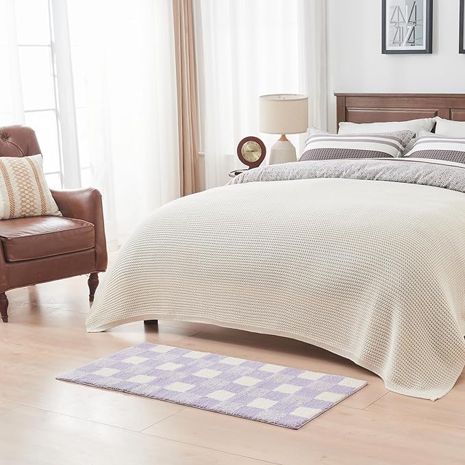 CozeCube Checkered Bath mats for Bathroom Non Slip, Fluffy Absorbent Microfiber Bath mat Washable, Aesthetic Bathroom Rugs, Cute Bath mat for Shower Sink, Purple, 24" x 16"