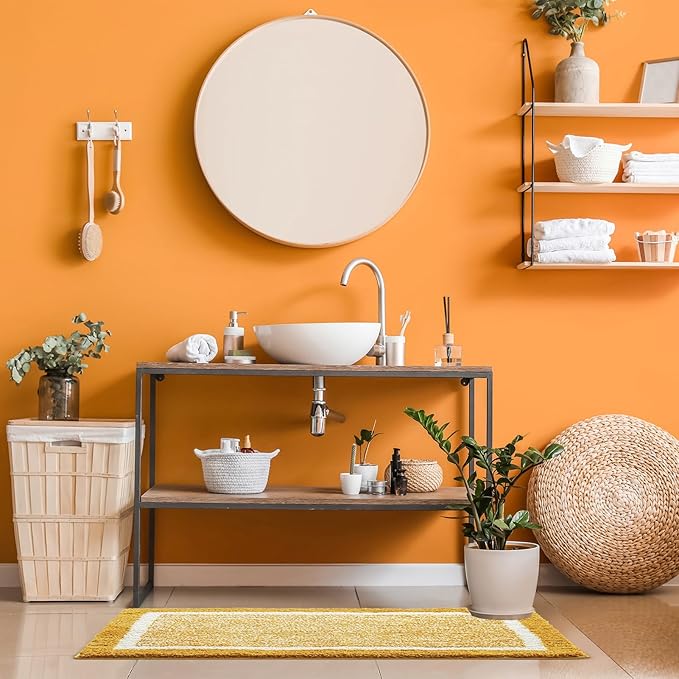 - 【Machine washable】This bathroom floor mats are machine washable with cold water and mild detergent (no chlorine or bleach) hang air dry. The Color will not fade and stay vibrant for years after washing it.