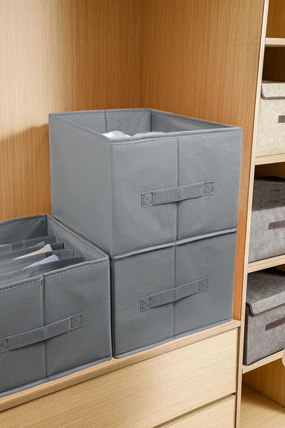 Extra Large Clothes Closet Organizer 6 Compartments for Jean Sweater Sheets to Shirt - Divided Clothing Storage Boxes for Closet, Wordrobe, Bedroom, Shelf (4pc Gray)