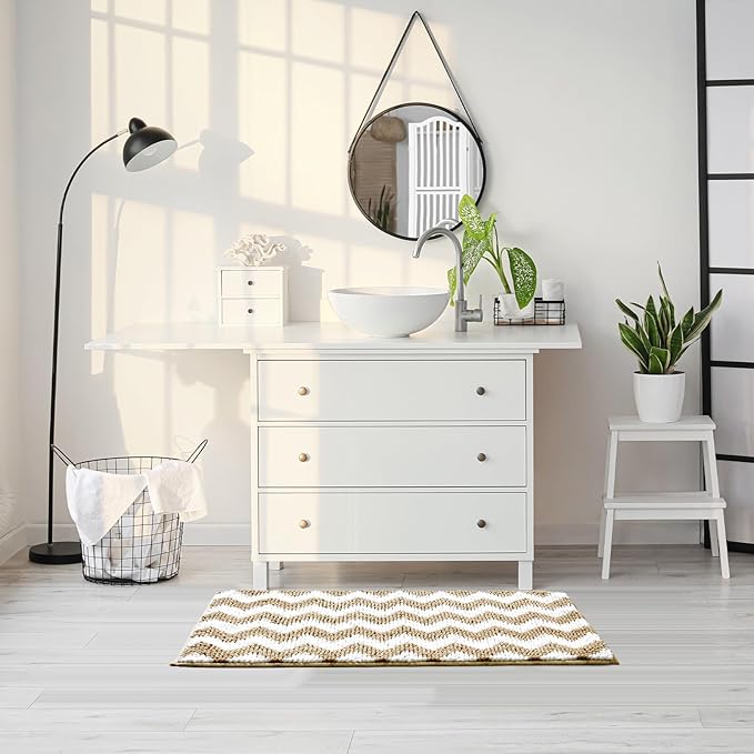 - 【Modern Chevron Design】Add some character and a classy appeal to your bathroom with our chevron bathroom rug, blending fashion with function, it takes on a minimalist style through a decorative chevron pattern, delivers a glamorous look in any space.