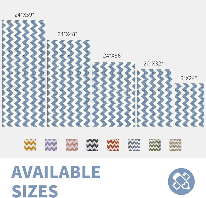 CozeCube Chenille Bathroom Rugs 36" x 24", Soft Microfiber Chevron Bath Mats for Bathroom, Non Slip Shaggy Bath Rugs Machine-Washable, Plush Absorbent Shower Mat, Blue