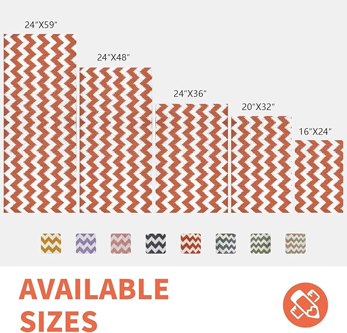 CozeCube Orange Chenille Bathroom Rugs 59" x 24", Soft Microfiber Chevron Bath Mats for Bathroom, Non Slip Shaggy Bath Rugs Machine-Washable, Plush Absorbent Shower Mat, Halloween Bath mat