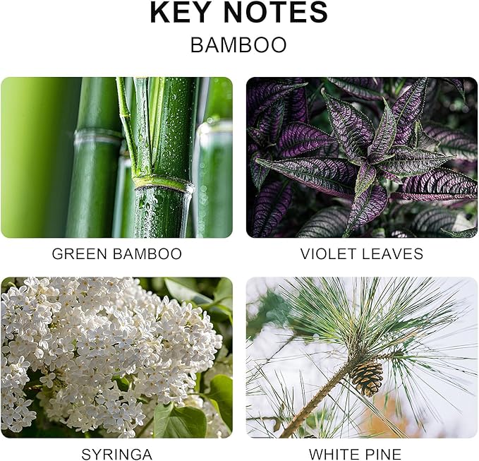 - 【Bamboo】Its scent is a combination of sweet, grassy, and woody, like freshly cut grass and wood chips, creating the perfect aromatic balance.