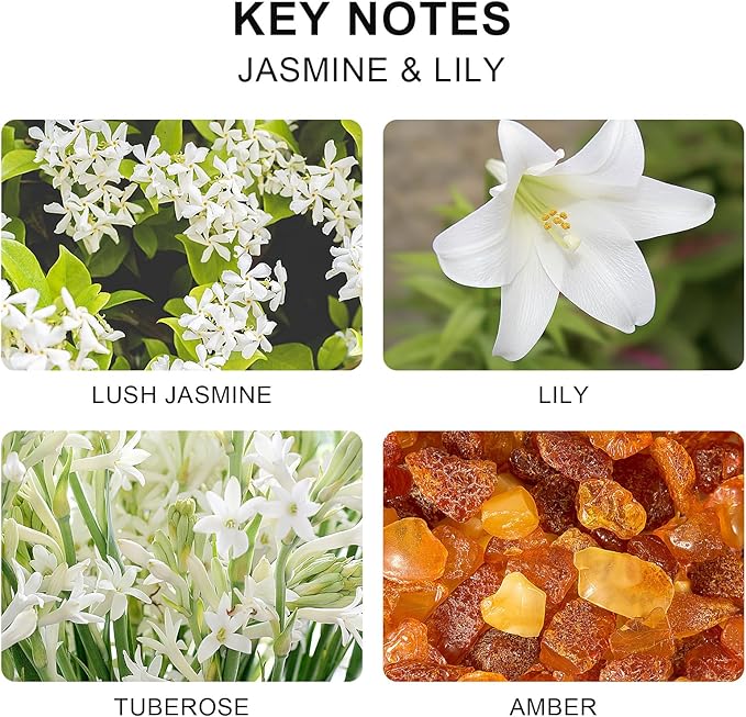 - 【Jasmine & Lily 】This perfume is a pale yellow clear liquid, combining the scents of jasmine and lily, producing a rich, warm, heady floral and yet subtle aroma.