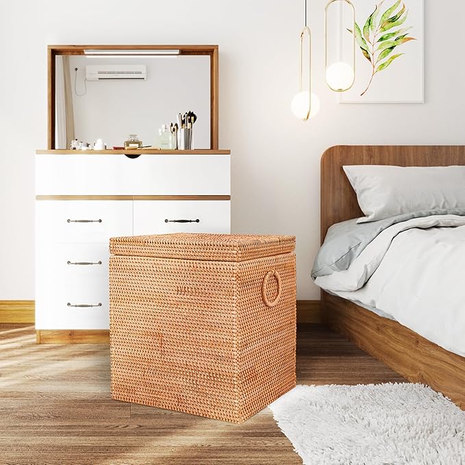 - 【DECORATIVE LAUNDRY HAMPER FOR HOME DECOR】:All details of every LAUNDRY BASKET has been carefully processed, the lid can keep the stuff away from dust. The longer you use it, the color of the laundry hamper will gradually darken and become more classical, and the surface will be smoother and more comfortable,the rattan laundry basket is durable and never out of date.
