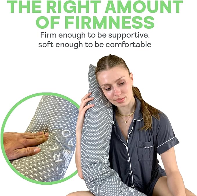 - COOLING MEMORY FOAM - Made with cooling memory and a heat-wicking polyester and charcoal cover, our body pillow stays cool throughout the night.