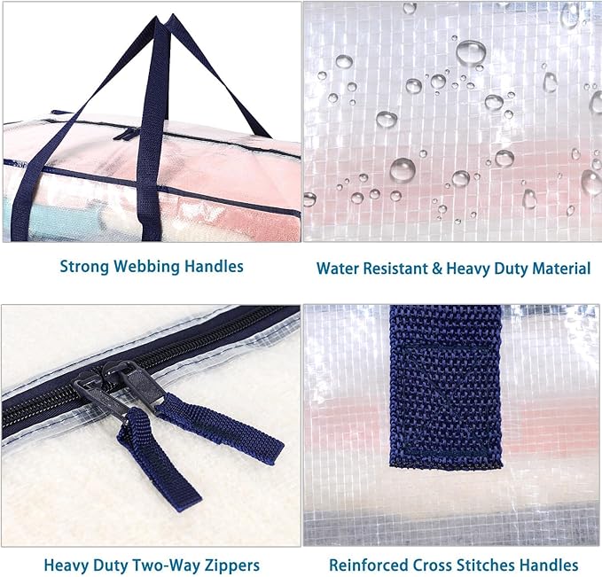 - Clear Tag Pocket & Wide Opening – Say goodbye to the frustration of searching for your belongings. Make a custom label and insert it into the clear tag pocket for easy identification of items like blankets, bedding, pillows, and clothes. Remember to use this labeling feature for organizing college dorm room essentials, moving to a new home, or storing items in the garage. The bag is equipped with dual extended zippers, creating a wide opening that allows for effortless access to stored items.