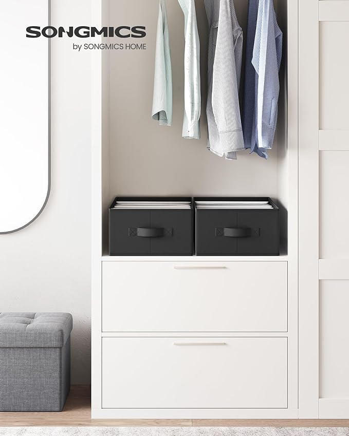 SONGMICS Set of 2 Large Size Wardrobe Clothes Organizers, 6-Compartment Foldable Drawer Organizers with Handles, 16.5 x 11.8 x 6.7 Inches, for Pants, Sweaters, Jeans, Ink Black URUS009B02