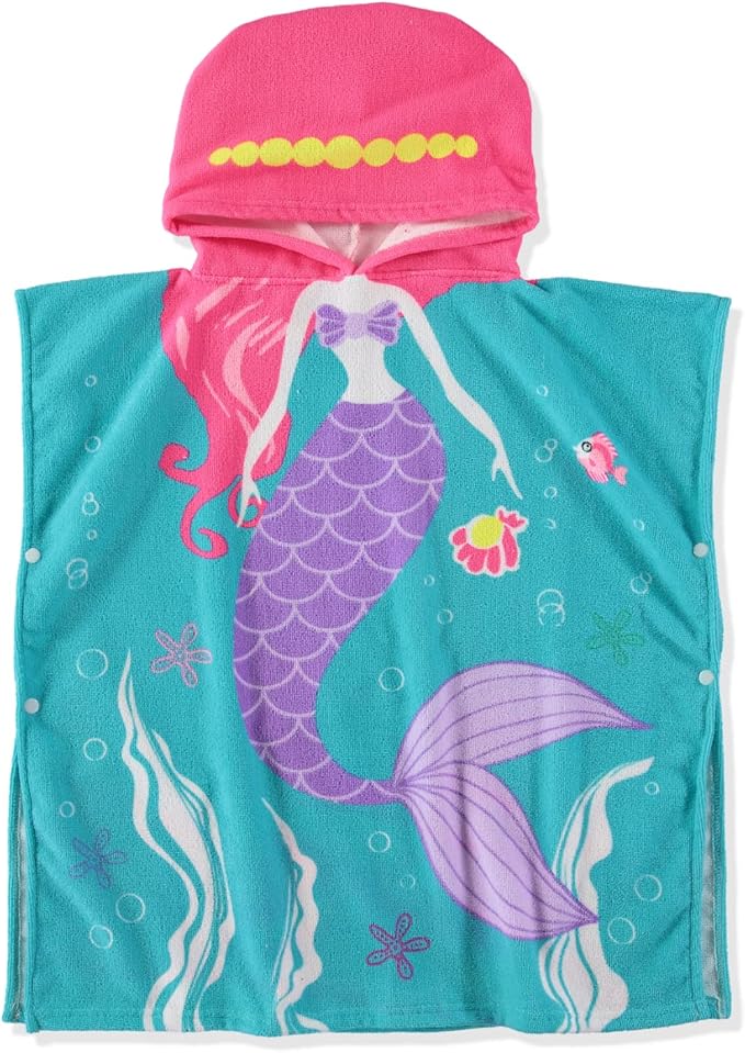 Boys and Girls Absorbent Hooded Beach Towel Pullover Character Microfiber Bath Towel with Side Snaps (Mermaid, 4-5)