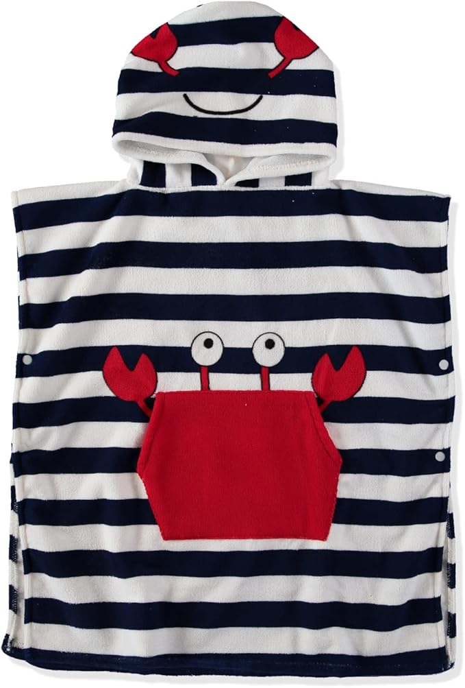 Boys & Girls Absorbent Hooded Beach Towel Pullover Character Microfiber Bath Towel with Side Snaps (Crab, 4-5), 27.00'' x 26.00''
