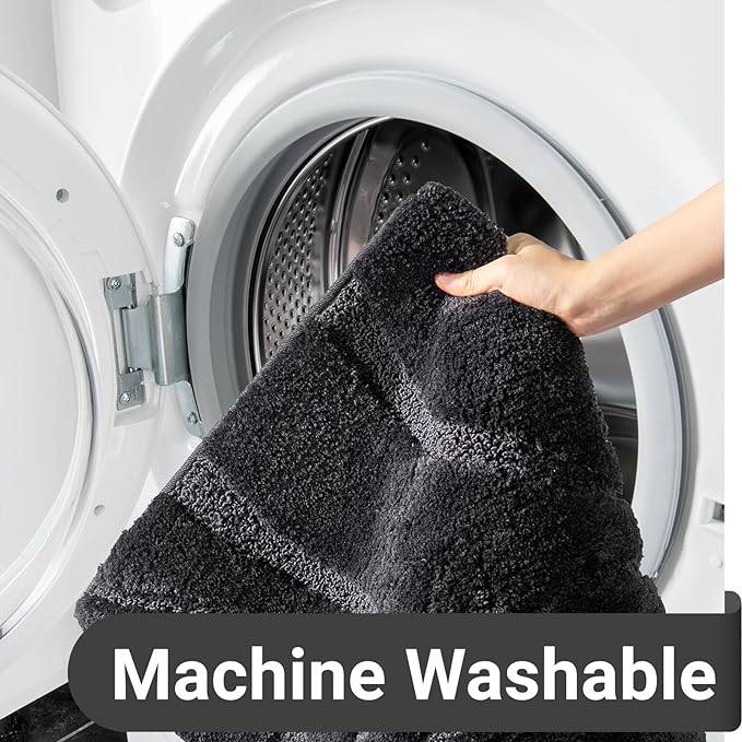 DEXDE Bathroom Rugs Mat 20x32, Soft Plush Shaggy Microfiber Bath Rug Non Slip Bath Mats for Bathroom Floor, Machine Washable Absorbent Carpet for Shower Tub, Black