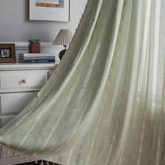 ColorBird Sage Curtain 84 inch Length, 2 Panels Farmhouse Linen Curtains for Living Room, Light Filtering Embroidered Curtains & Drapes for Dining Bedroom Nursery Doorways