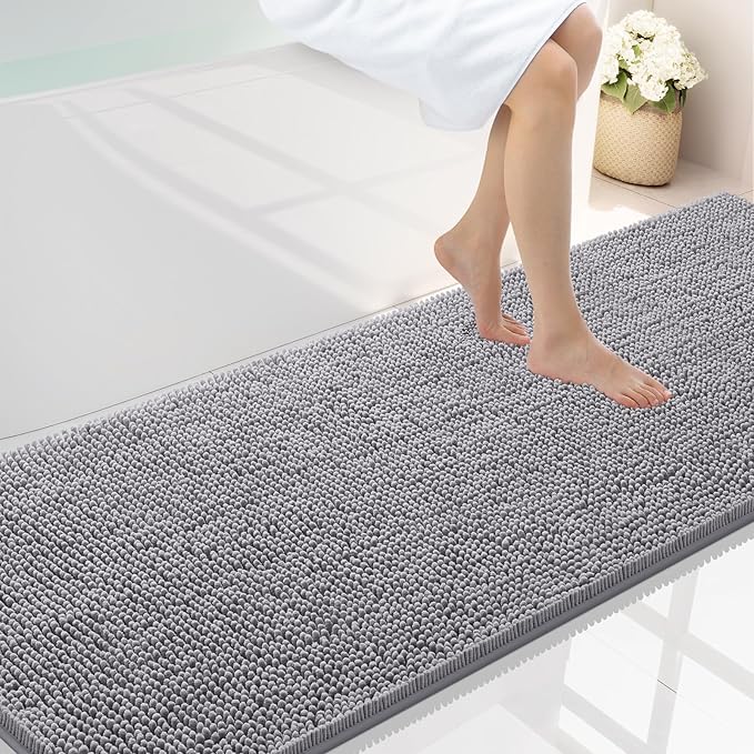 Smiry Luxury Chenille Bathroom Rugs 70x24, Extra Soft and Absorbent Shaggy Bath Mat, Machine Washable, Non-Slip Plush Carpet Runner for Tub, Shower, and Floor, Home Decor Accessories, Grey
