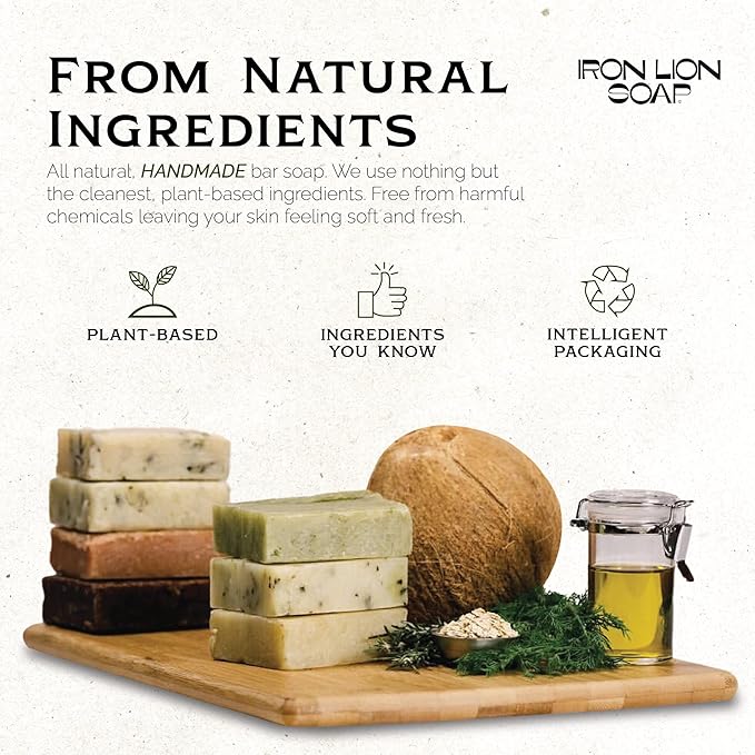 - HANDCRAFTED WITH LOVE: Each bar of Iron Lion Soap is a work of art, meticulously handmade in small batches. The result? A diverse range of enchanting scents that enhance your skincare routine. The rich lather leaves your skin feeling soft and nourished, providing an effective cleanse that's naturally derived. Enjoy our products as a hand soap bar or bath soaps for your face and body.